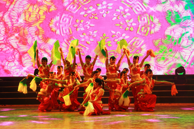 除了抓人眼球的现代歌舞表演外,《俏媳妇追梦》、《麻柳绣娘》等歌舞,极具地方特色的民间传统文化,把舞台艺术与民间文化完美融合,以其丰富多彩的内容和贴近生活的艺术表现形式,跳出了朝天儿女对美好生活的无穷期盼,唱出了朝天儿女自强不息、团结拼搏、不甘落后、勇争一流的精神风貌和无穷力量。源于生活又高于生活的精彩表演,引得观众掌声阵阵,叫好连连。