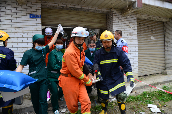 公安、消防、卫生、民兵等抢险救灾队伍赶赴现场开展人员搜救,被困者很快脱离险境,并在医疗救护人员的陪伴下送往临时医疗救护点进行治疗。