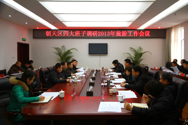 本网讯(杨春恩)1月15日,区委书记蔡邦银,区委副书记、区长伏玉琼,区人大常委会主任梁黎,区政协主席贾光升等四大班子领导对我区2013年旅游工作进行专题调研。蔡邦银强调,相关部门要将2013年作为“旅游效益提升年”,实施旅游发展“1234”战略,全面建成和提升明月峡、曾家山、龙门阁、水磨沟四个国家4A级旅游景区,打造朝天镇、曾家镇、青林乡三个旅游集散中心和剑门蜀道、生态养生两条精品游线,深度推进旅游文化产业融合,将朝天建成全国知名的蜀道文化旅游和生态养生基地及旅游目的地。