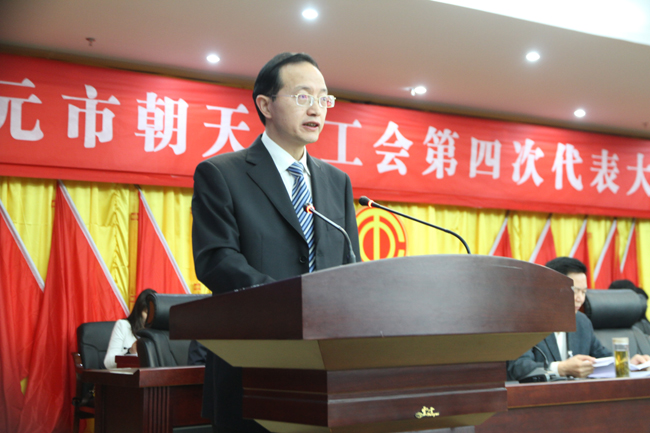 本网讯(文/刘贤芳  图/杨春恩)4月10日,广元市朝天区工会第四次代表大会在区文化中心隆重召开。市总工会党组书记、常务副主席何开金应邀出席会议并致辞,区委书记蔡邦银作重要讲话,区委副书记、区长伏玉琼主持开幕式,区人大常委会主任梁黎,区政协主席贾光升到会祝贺。区领导王天会、王祝远、何开莉、付全宇出席开幕式。