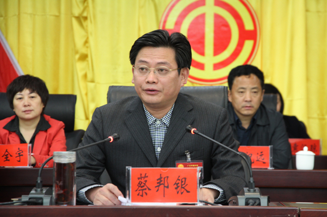 在开幕式上,蔡邦银作重要讲话。蔡邦银指出,区委六届六次全会深入贯彻党的十八大和中央、省委经济工作会议及市委六届七次全会的部署要求,准确把握区情特征和发展阶段性特征,进一步完善提升了朝天未来八年发展的奋斗目标、发展思路和战略举措,提出了“建成全面小康和建设美丽朝天”的宏伟奋斗目标,对今年工作作出了安排部署。新的目标,新的任务,对全区各级工会组织提出了新的更高要求,蔡邦银希望,广大职工要解放思想、与时俱进,争当先进性的体现者;要积极进取、勤奋工作,争当敬业型的劳动者;要抢抓机遇、勇于竞争,争当创新业的排头兵。蔡邦银要求,区工会要始终坚持以能力建设为主线,进一步提高服务大局的能力和水平,提升工会工作的水平和成效;进一步提高动员和组织职工的能力和水平,创新组织的设置方式和活动方式;进一步提高表达和维护职工合法权益的能力和水平,做到敢于维权、善于维权、依法维权,切实把工会建设成为广大职工遮风挡雨、排忧解难的“温馨之家”,“幸福之家”;进一步提高工会协调劳资关系和化解社会矛盾和能力和水平,协助处理好多种利益关系和矛盾,以实际行动促进和谐朝天建设;进一步提高工会为职工服务的能力和水平。同时,蔡邦银对即将选举产生的新一届工会领导班子提出了希望,继续加强工会自身建设,把职工的积极性调动好,创造性发挥好,先进性发展好,为建成全面小康和建设美丽朝天积极贡献才智和力量。
