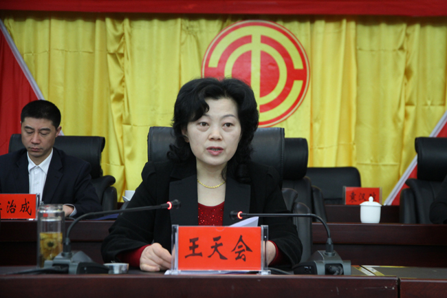 当选新一届区总工会主席的区委常委王天会号召全区各级工会组织在区委的坚强领导下,深入学习贯彻党的十八大精神,按照“稳定增势、科学发展、跨越发展”的工作基调,进一步解放思想,团结奋进,努力建设川陕结合部经济发展、文化繁荣、生态优良、社会和谐、人民幸福的美丽朝天,奋力开创全区工会工作的新局面。