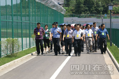 区财政局机关党支部全体党员在狱警的带领下参观监狱宿舍、生产车间