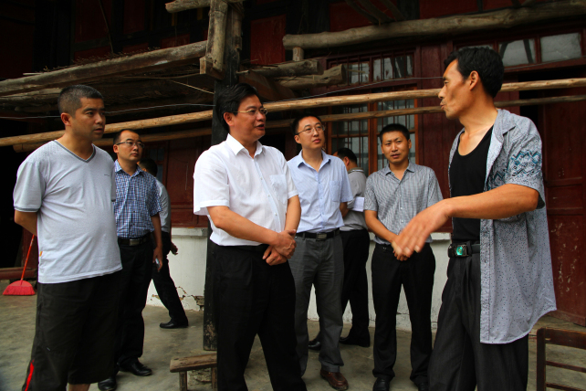 由于地处滑坡地带,韩家村村民李培明家的墙壁和地面出现了宽达2cm左右的裂缝,附近8户群众生命财产安全受到严重威胁。蔡邦银要求,要把保障群众生命安全作为当前第一要务,乡镇一把手带头深入各地质灾害点现场检查指导,充分发挥村“两委”党员干部模范带头作用,坚持“预防避让、提前避让、主动避让”的原则,让群众懂得应急避险的基本技能、避险途径和应急信号,做到人人心中有数,遇灾不慌、沉着避险;要提前做好安置规划,尽快实行整体避险搬迁,彻底解除对滑坡险区群众的后顾之忧。同时,国土、交通等部门要科学、安全、稳妥地同步开展地质灾害点治理工作,有效保护群众土地资源。