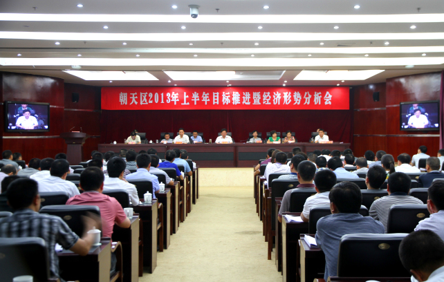 本网讯(杨春恩)7月31日,朝天区召开2013年上半年目标推进暨经济形势分析会,传达贯彻党中央国务院、省委省政府和市委市政府半年经济形势分析会议精神,总结分析“双过半”目标完成情况,安排部署今年后5个月工作,确保圆满完成全年目标任务。区委书记蔡邦银出席会议并作重要讲话。区人大常委会主任梁黎,区政协主席贾光升出席会议。区委副书记罗凌云主持会议。