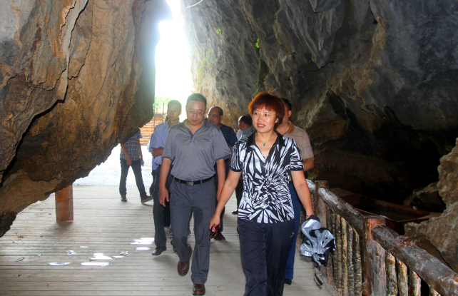 溶洞内,灯光电路、步游道等基础设施工程建设基本完成;洞外水系景观平台、检票窗口、吊桥等项目建设也已竣工,游客服务中心、景点道路等项目正有序推进。伏玉琼一行先后深入游客中心、水系景观平台、溶洞内、洞外广场等施工现场,详细了解景点建设情况,认真听取项目负责人关于景点建设推进情况汇报,对景点推进情况给予肯定。她认为,相关部门在景点建设中,依托现有资源,科学规划,合理布局,突出了旅游文化品牌打造。