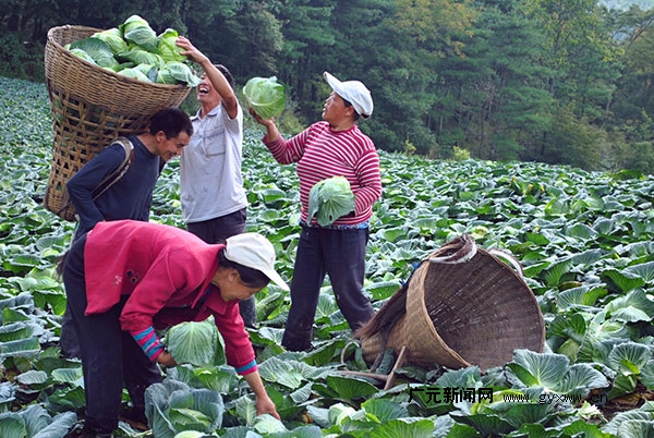 “今年又是大丰收。”尹定江为帮工打工的乡亲倒茶水的时候告诉记者。他给记者算了一笔账。去年他家种了20亩“寒将军”,一亩3000株,每株平均6斤,共卖了30万斤。除去2000元的种子和5000元的专用肥料外,蔬菜纯收入就6万多元。