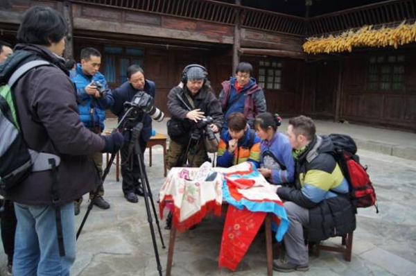 摄制组先后对明月峡古栈道、川洞庵天坑、朝天区地方小吃、麻柳刺绣文化和唱山歌进行了取景拍摄。在拍摄过程中,景区讲解员及陪同人员向栏目组成员详细介绍了明月峡和川洞庵的自然景观特点和我区在饮食、刺绣、山歌等方面的文化传承底蕴。听过介绍,栏目组成员在赞美朝天区景色美丽的同时更被我区被列为国家级非物质文化遗产的麻柳刺绣所深深吸引。