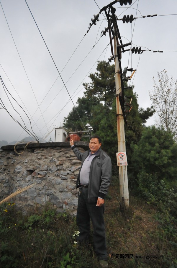 这是邱子文带人抬上山的第一台变压器和第一根线杆。