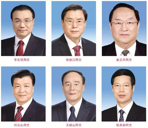 习近平李克强张德江俞正声刘云山王岐山张高丽任政治局常委