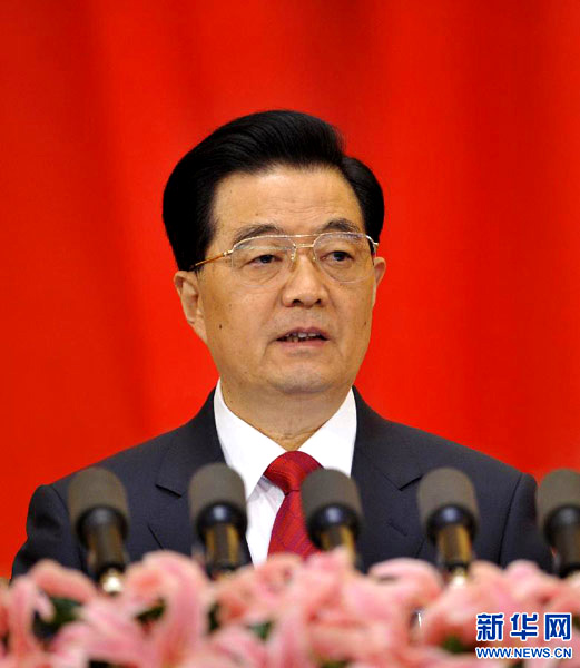 11月8日,中国共产党第十八次全国代表大会在北京人民大会堂开幕。胡锦涛代表十七届中央委员会向大会作报告。 新华社记者 黄敬文 摄