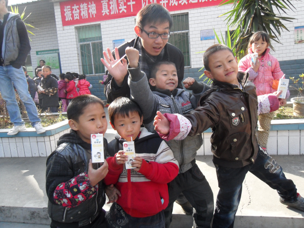 (团区委)“小朋友,你们觉得学校好不好呢。想不想有更多的老师来给你们上课呢?”