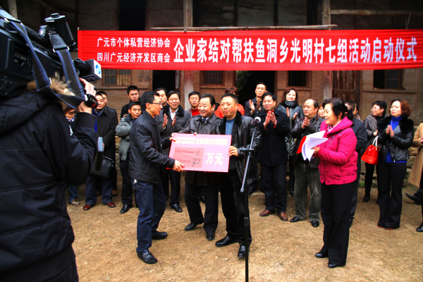 本网讯(刘贤芳)12月10日,由广元市工商业联合会、广元经济开发区商会、市个体私营经济协会、广元市福建商会、广元市贸易商会五家单位组织的38家企业帮扶我区鱼洞乡光明村7组活动正式启动。