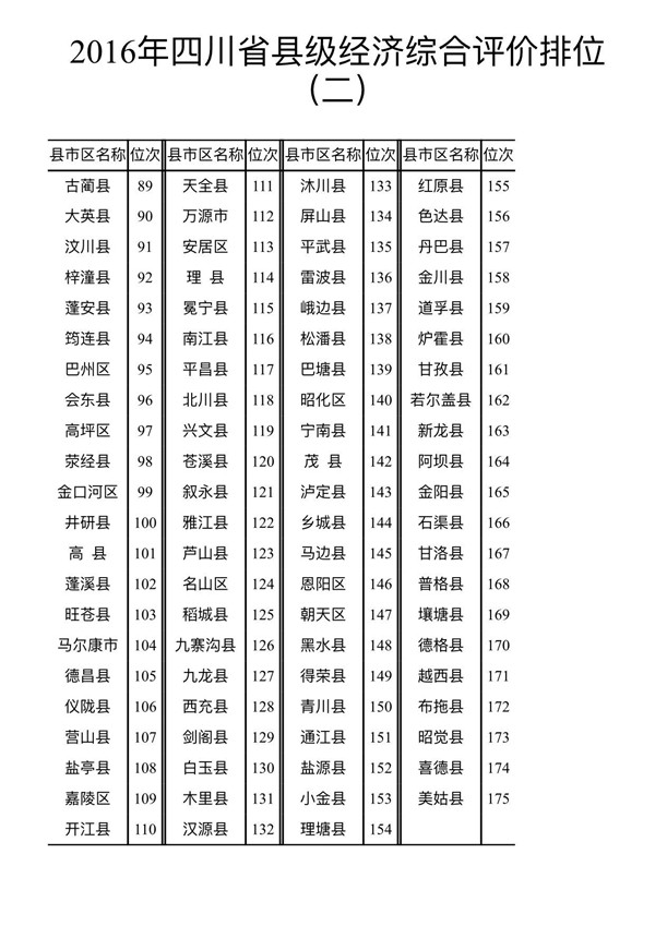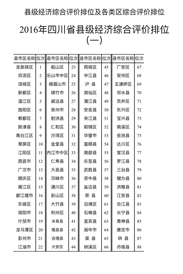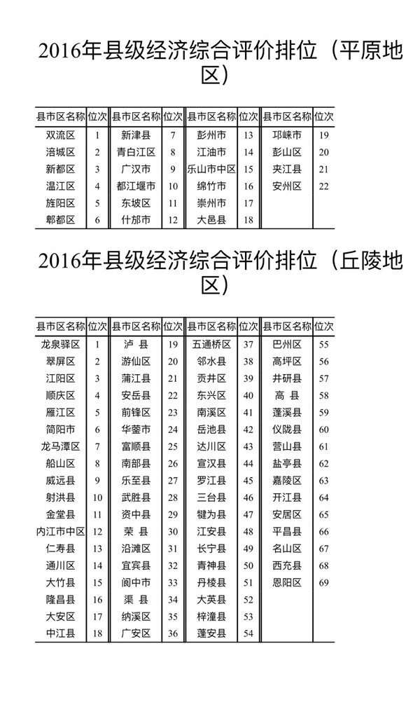 2016年四川“十强县”名单出炉 龙泉驿区再夺首位